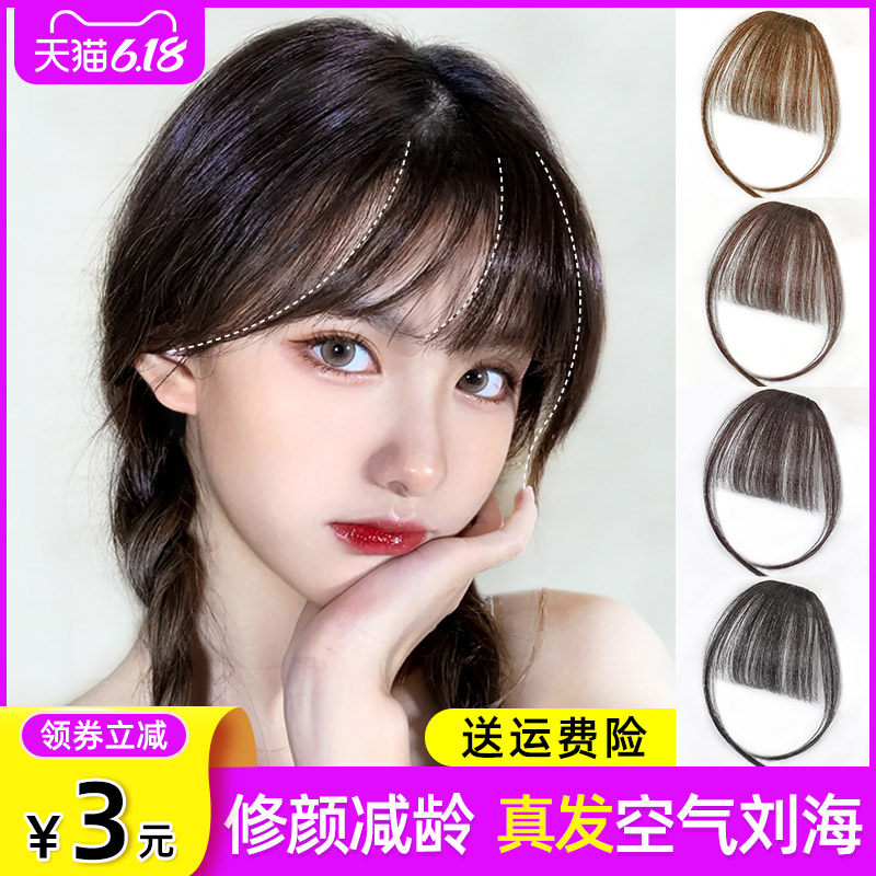 空气刘海真发假发女漫画假刘海自然前额超薄隐形无痕齐留海假发片热门设计联盟服务商