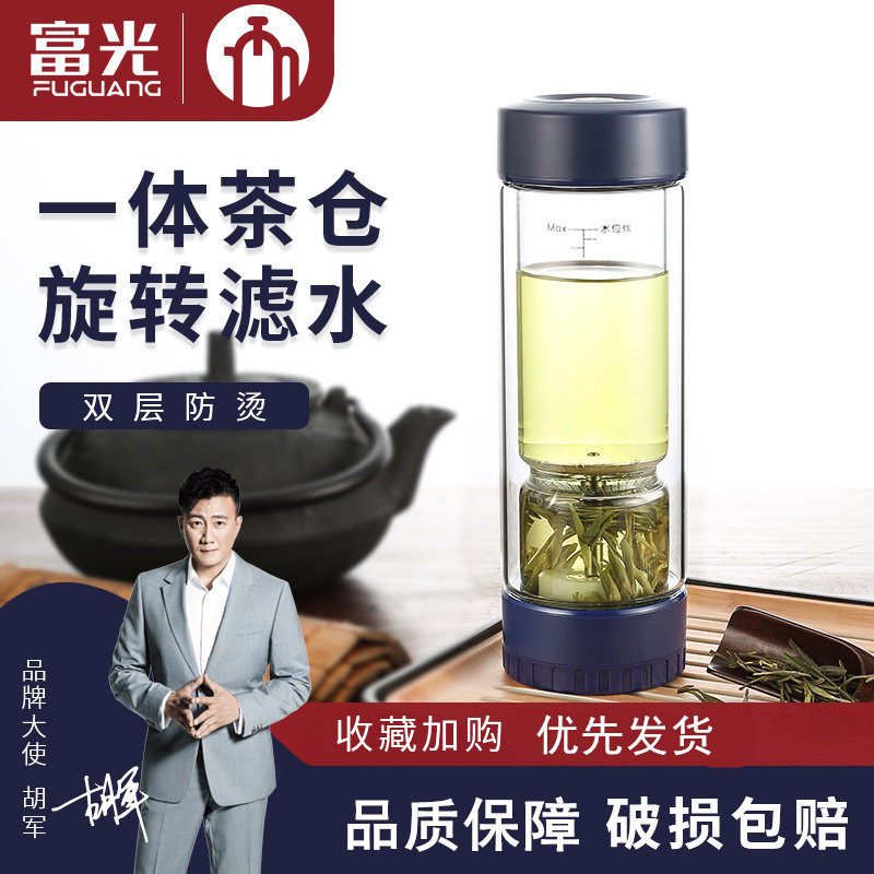 富光玻璃杯茶马仕单双层茶水分离泡茶杯高档便携直身杯团购印字热门设计联盟服务商