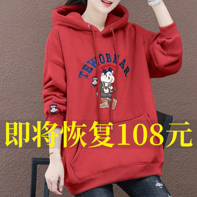 加绒加厚连帽卫衣女中长款2021新款秋冬百搭慵懒风宽松设计感外套热门设计联盟服务商