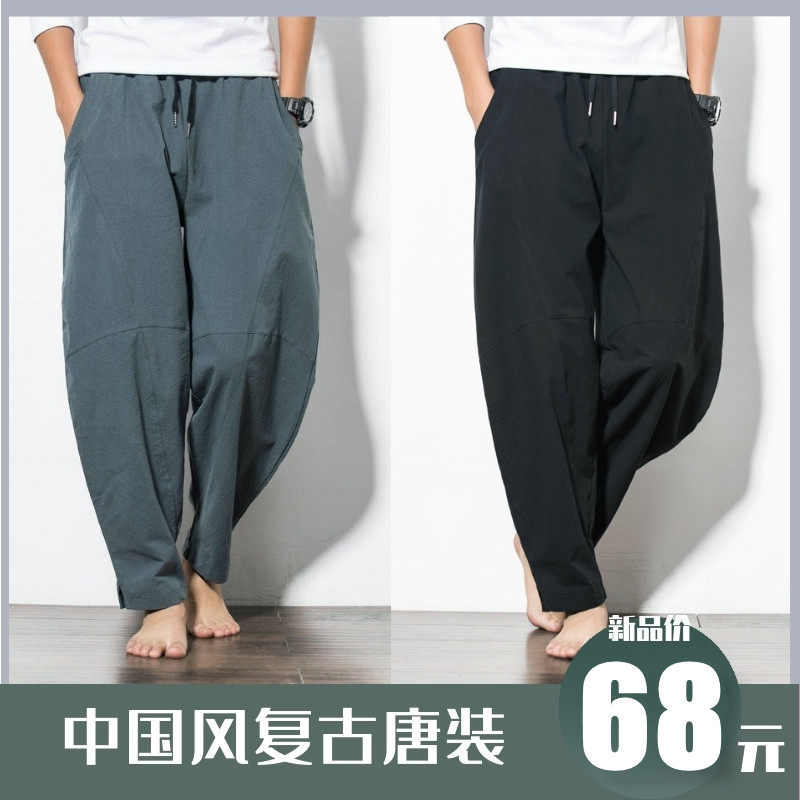 【国风】东权古町男装设计师款男士宽松棉麻休闲裤长裤阔腿裤男裤热门设计联盟服务商