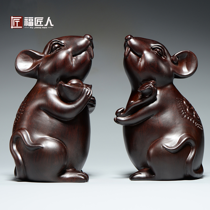 黑木老鼠实办公檀桌面生肖木雕工艺品木制家居摆客厅装饰十二鼠件热门设计联盟服务商