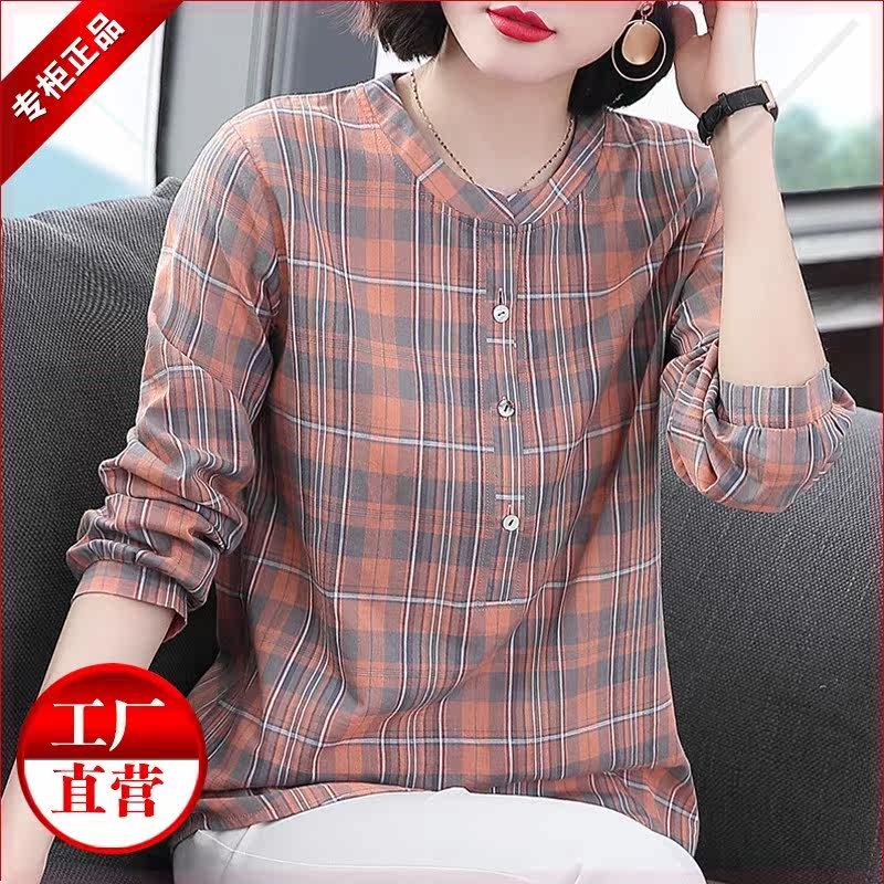 尚功沐女装【大款】2021春季新款洋气上衣格子长袖衬衫LBT105。热门设计联盟服务商