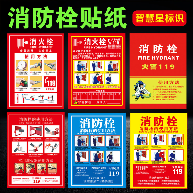 消防安全消防栓灭火器企业物业放置点使用方法贴纸提示牌标识定制热门设计联盟服务商