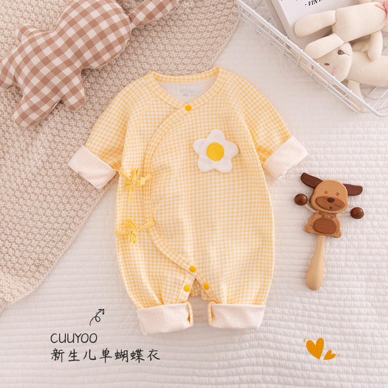 婴儿连体衣夹棉薄棉秋冬装新生儿棉服保暖女宝宝哈衣外穿纯棉衣服